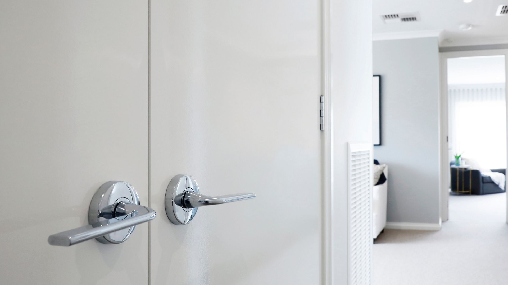 Screws align through the rose removing the need to locate them blind through the door. A twist and a quick tighten of screws and the levers are installed.