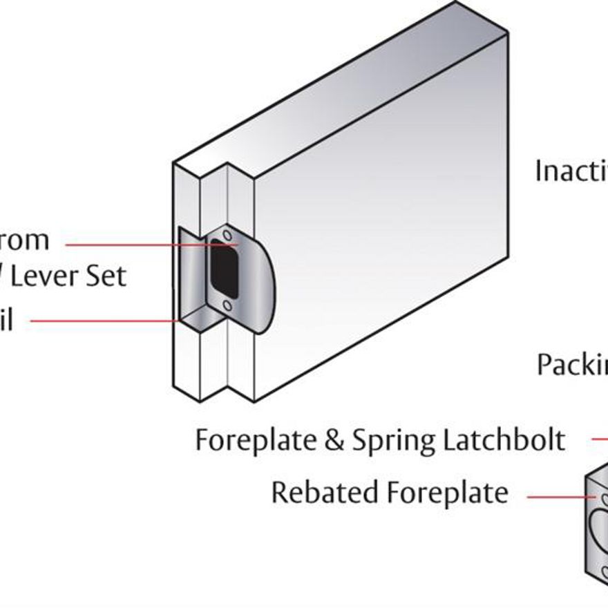 Symmetry Knob and Lever Series and Deadbolts can be converted for use on rebated double doors with a standard 12 to 13mm rebate by using the Symmetry Universal Rebate Kit.